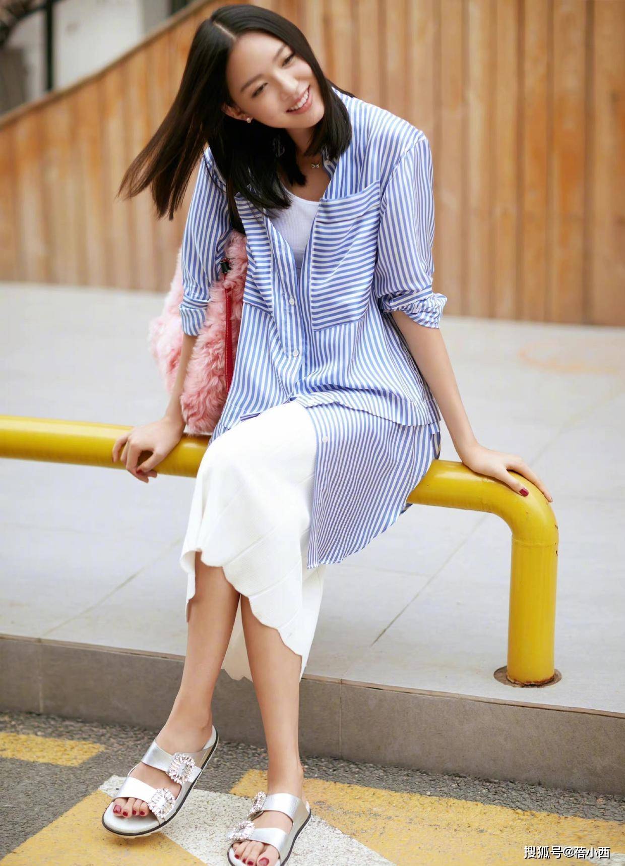 蓝白色的衬衫则是另一种经典的搭配。张梓琳选择了一款蓝白色的衬衫搭配白色裙子,知性优雅,给人一种浪漫温婉的感觉,展现了她柔美的一面。衬衫无论是与裙子还是裤子搭配,都能让人看起来精神十足。